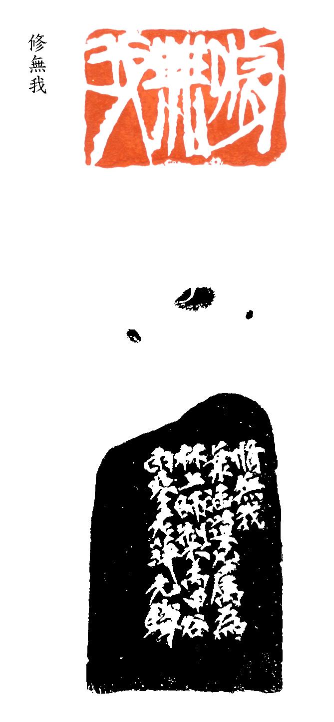 Disciple Hai Han got two seals for me, and asked me about the subjects to carve onto them. In the email below, Hao also provided the text of comments he carved on the walls of these seals. The subjects of these seals are as follows: One is Xiu Wu Wo, the Chinese text of the recent work, “Practice no self” in Three-Word Sutra:
